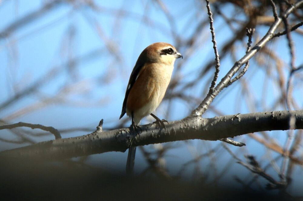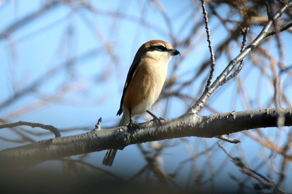 上流方向に向かっている途中、一羽のモズがいました。