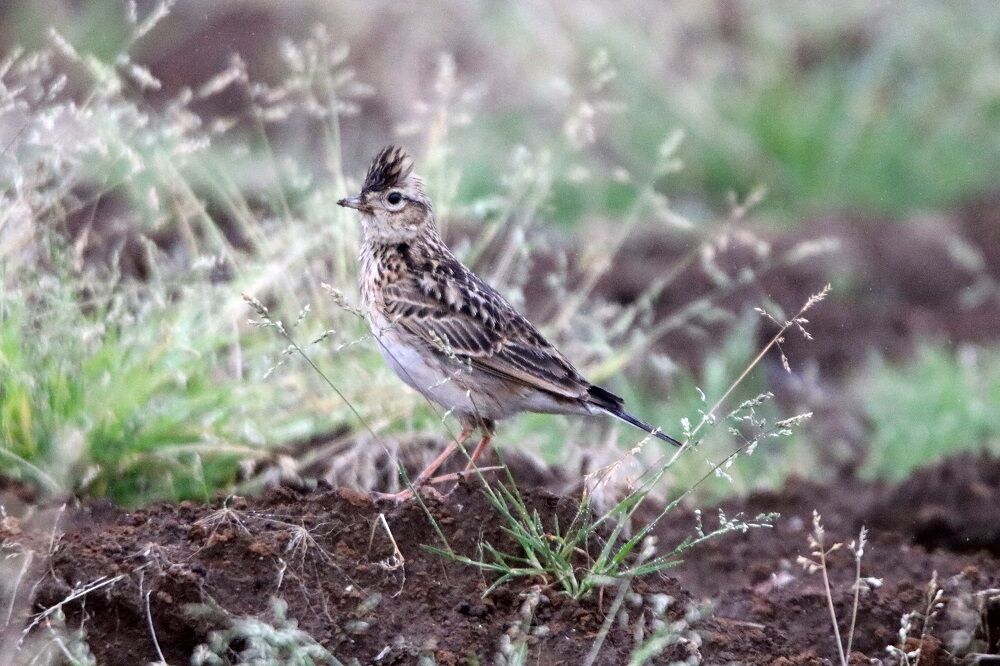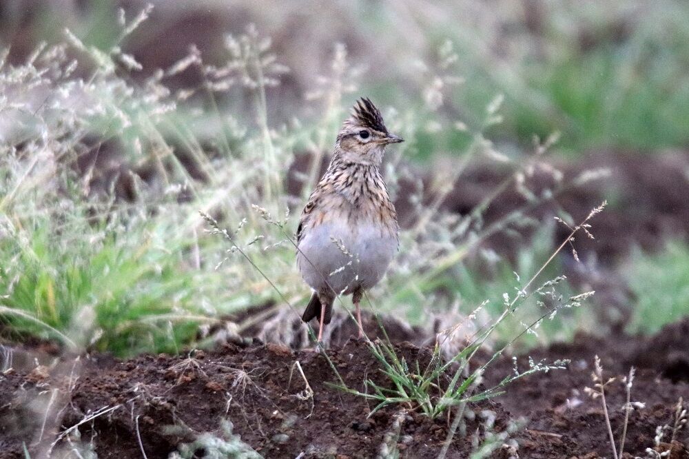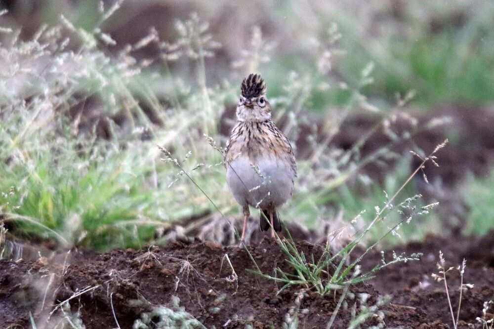 その近くに冠羽を目一杯に逆立てたヒバリがいました。