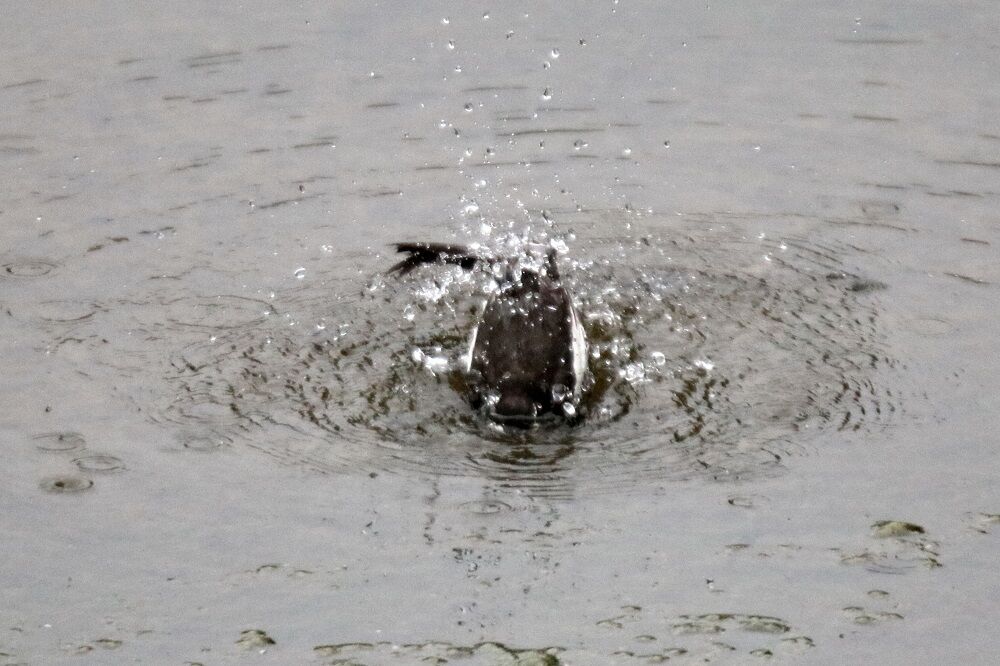 水浴びを始めます。雨降りなのにご苦労様です。