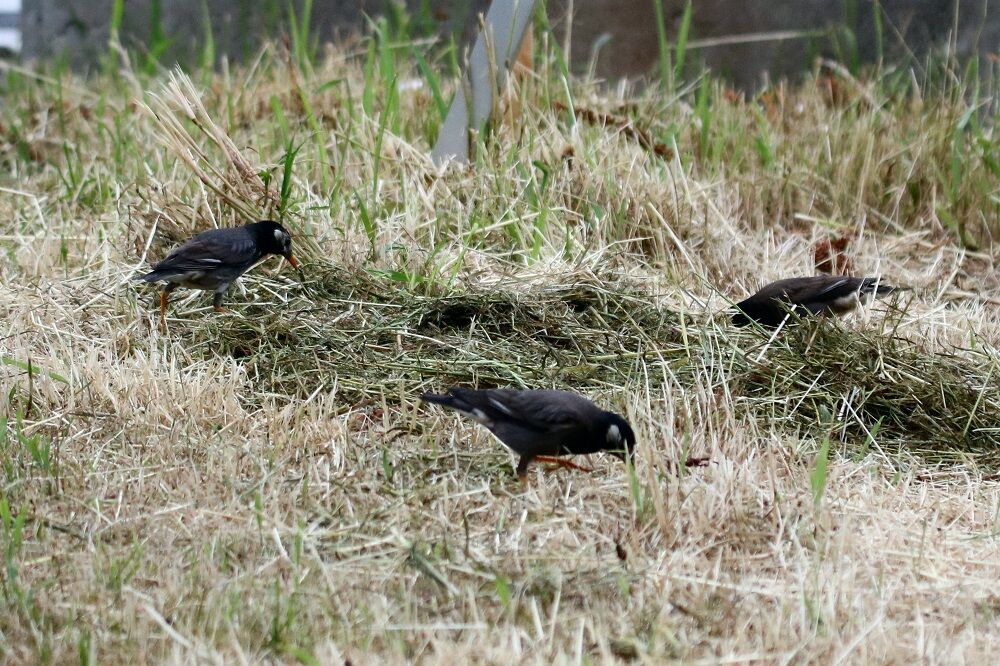 さらに上流側の進みます。今度は高杯橋まで着いてしまいました。途中に撮る対象はおらず、高杯橋の手前でムクドリが採餌していました。ここ最近、遊歩道際の雑草の手入れが行なわれ、その後でムクドリやスズメが採餌する様子をよく見かけます。そして、この辺りでは沢山のツバメも飛んでいます。