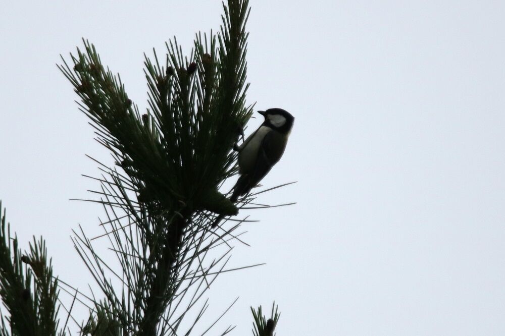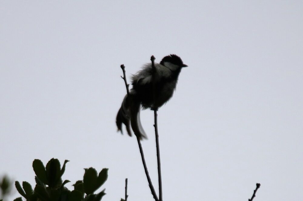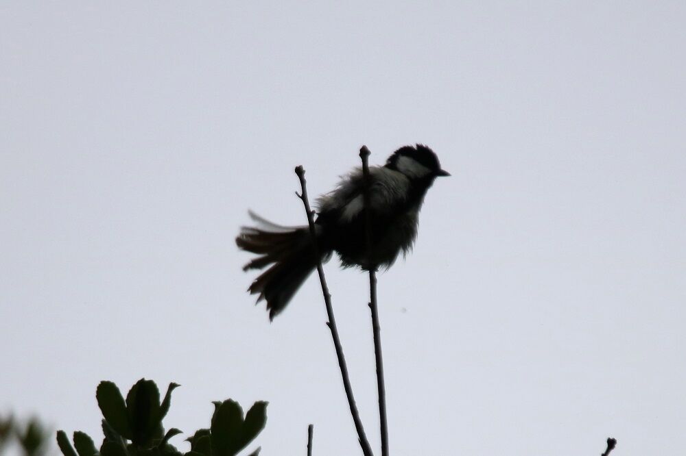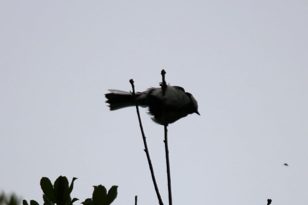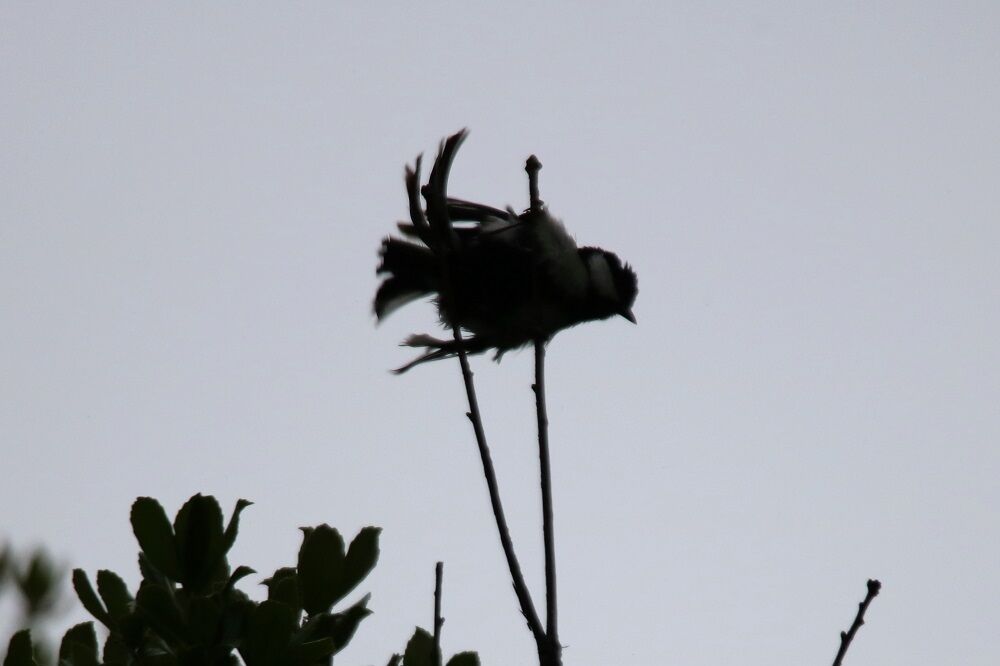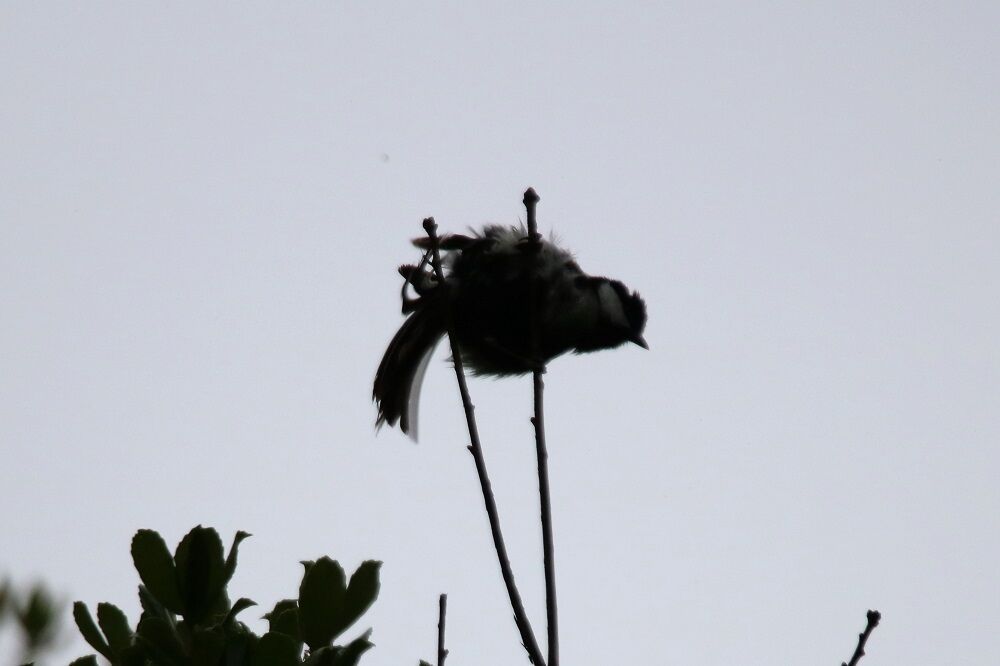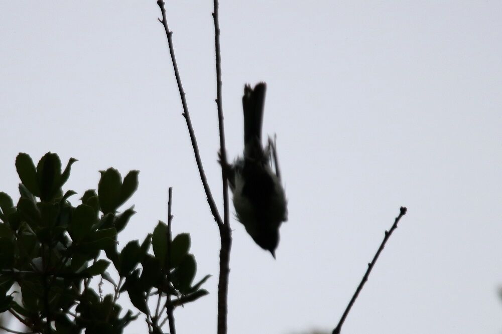 変な動きをするシジュウカラもいました。シルエット状になってしまい、見難いのですが・・・。