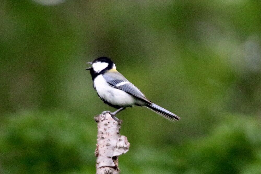 最近ここではよく見るシジュウカラです。木の折れた先で囀っていました。