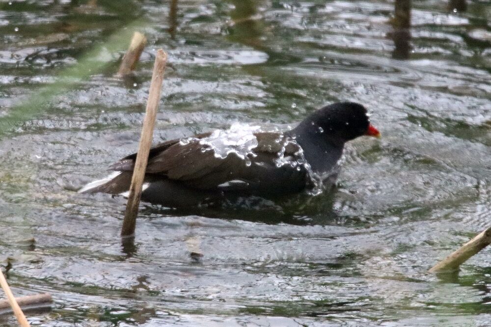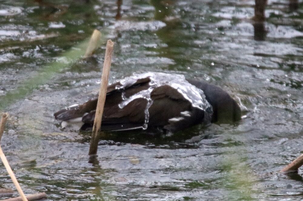 紙敷川の調整池まで着きました。バンがいます。そして、別のバンもいました。