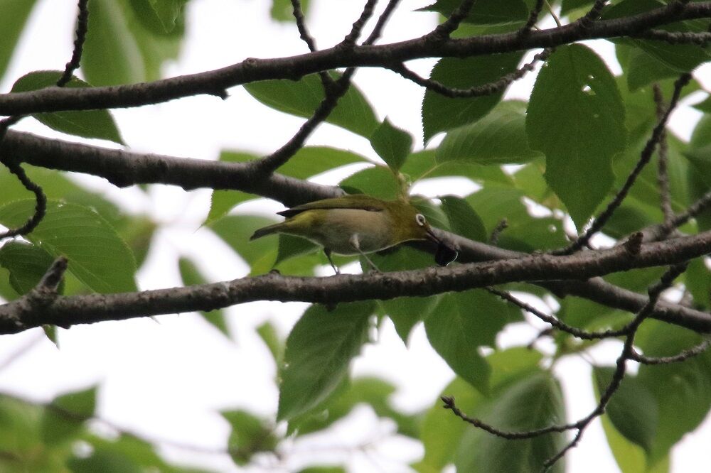 5月22日(金)の鳥さんのVol.1です。この日は夜勤明けに八柱霊園に行った後に春木川(国分川)に行きました。そして、この日も雨のちらつく天気でした。八柱霊園で森の近くに行くもののなかなか鳥が現れません。何か動くものがいたと思ったら久々に見るメジロでした。何かを咥えていたと思ったらヒナに餌を与えていました。
