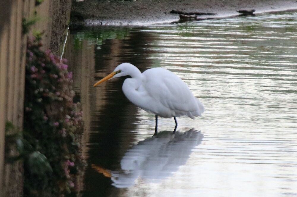 紙敷川にはダイサギとハクセキレイのみがいました。