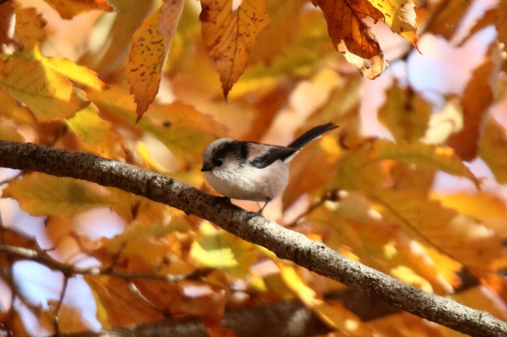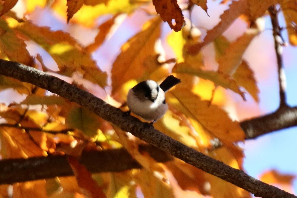 先ほどエナガがいっぱいいた場所に戻りました。いまだエナガがいっぱいいます。今回はシジュウカラもセットです。