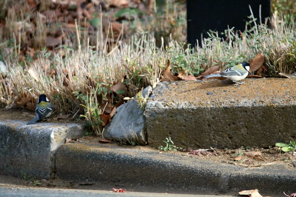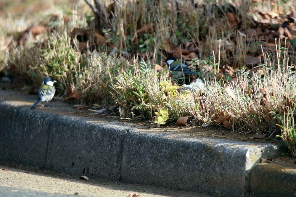 地面で採餌するシジュウカラもいました。